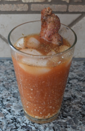 We were running a little low on Tomato Juice this morning, so substituted some Mint and Lime V8 Juice that we had on hand. Normally I wouldn’t think this would be a great mix with Bourbon, but it added a nice little zing!